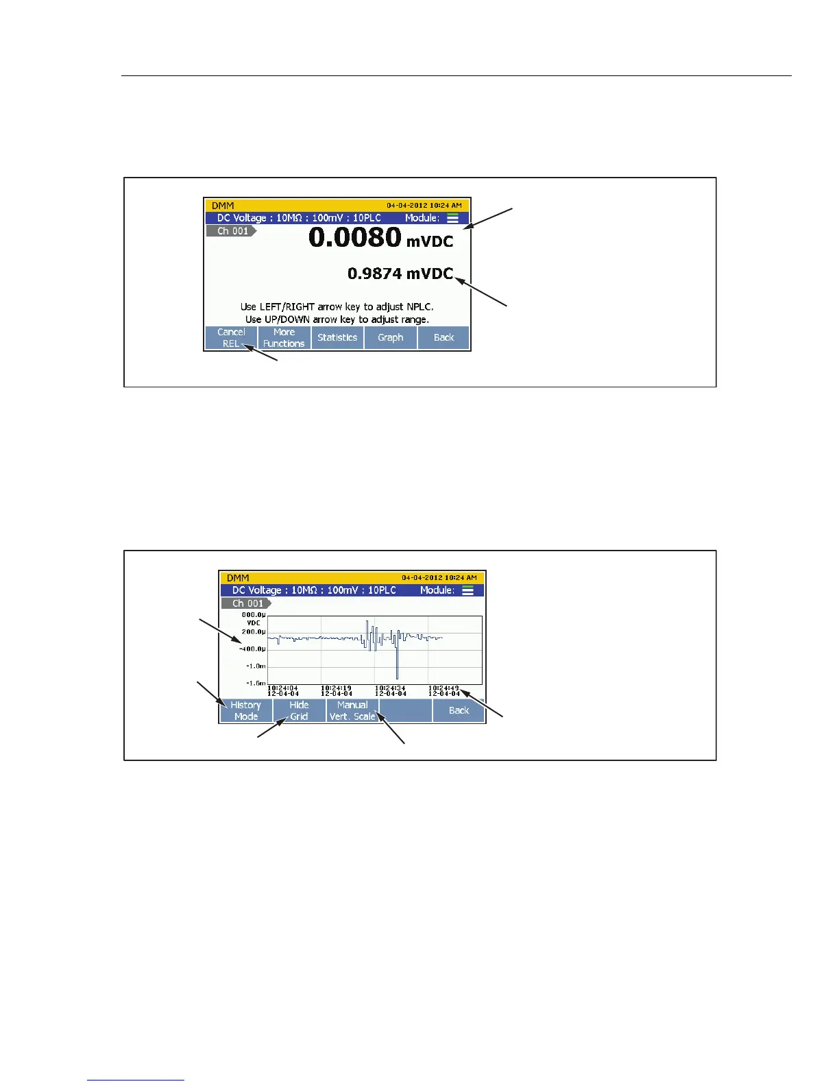 The DMM has a graph feature that lets the user display the measurement data in a graph.