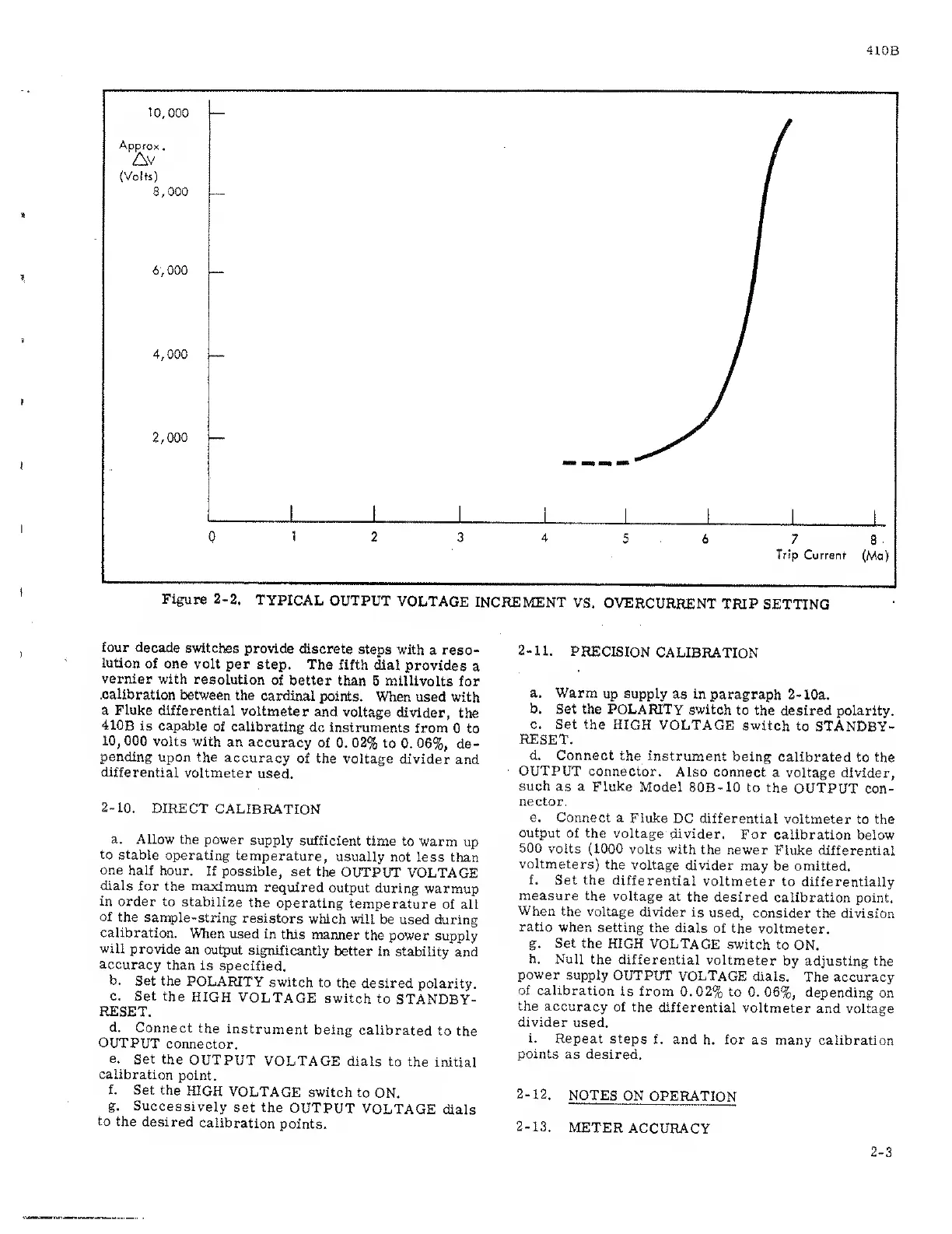 Fluke 410B - Direct Calibration; Set the OUTPUT VOLTAGE; Precision Calibration; Notes on Operation