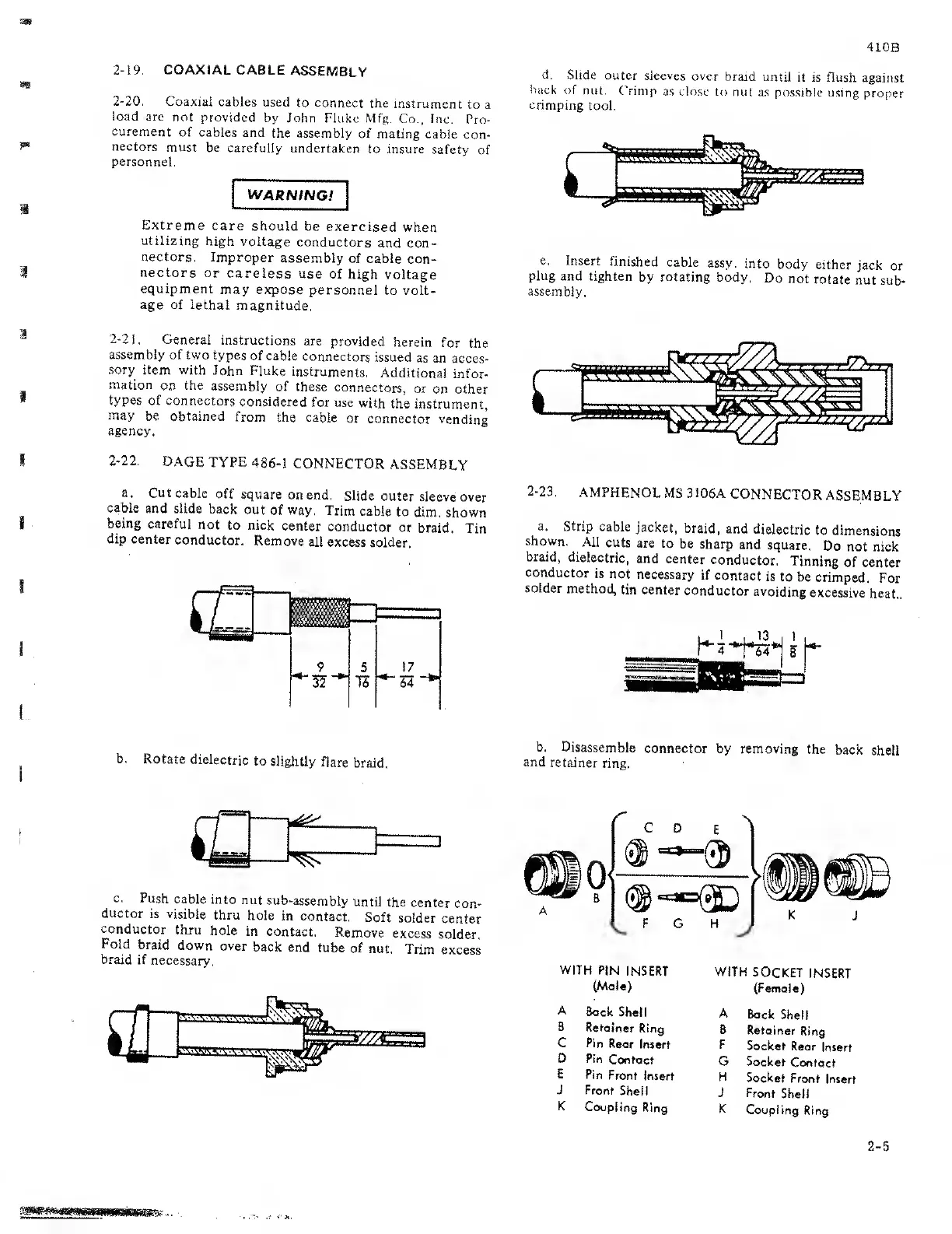 Fluke 410B - Coaxial Cable Assembly; Dage Type 486-1 Connector Assembly; Ms 106 A