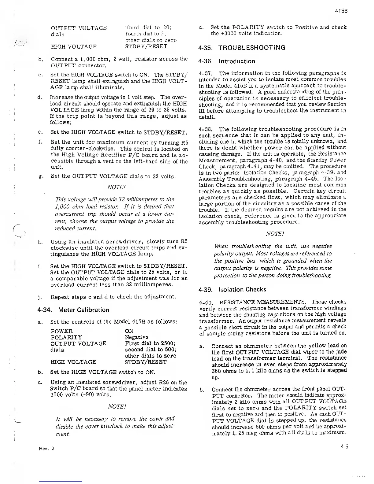 troubleshooting the unit, use negative