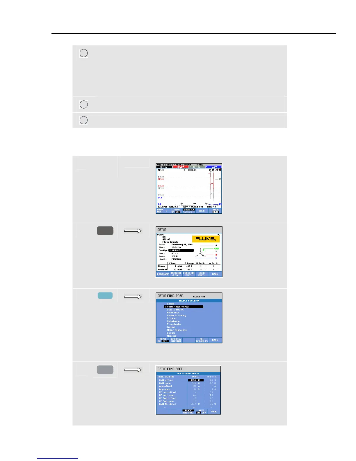 The example below shows stepwise how to adjust offset and span of a Volts/Amps/Hertz