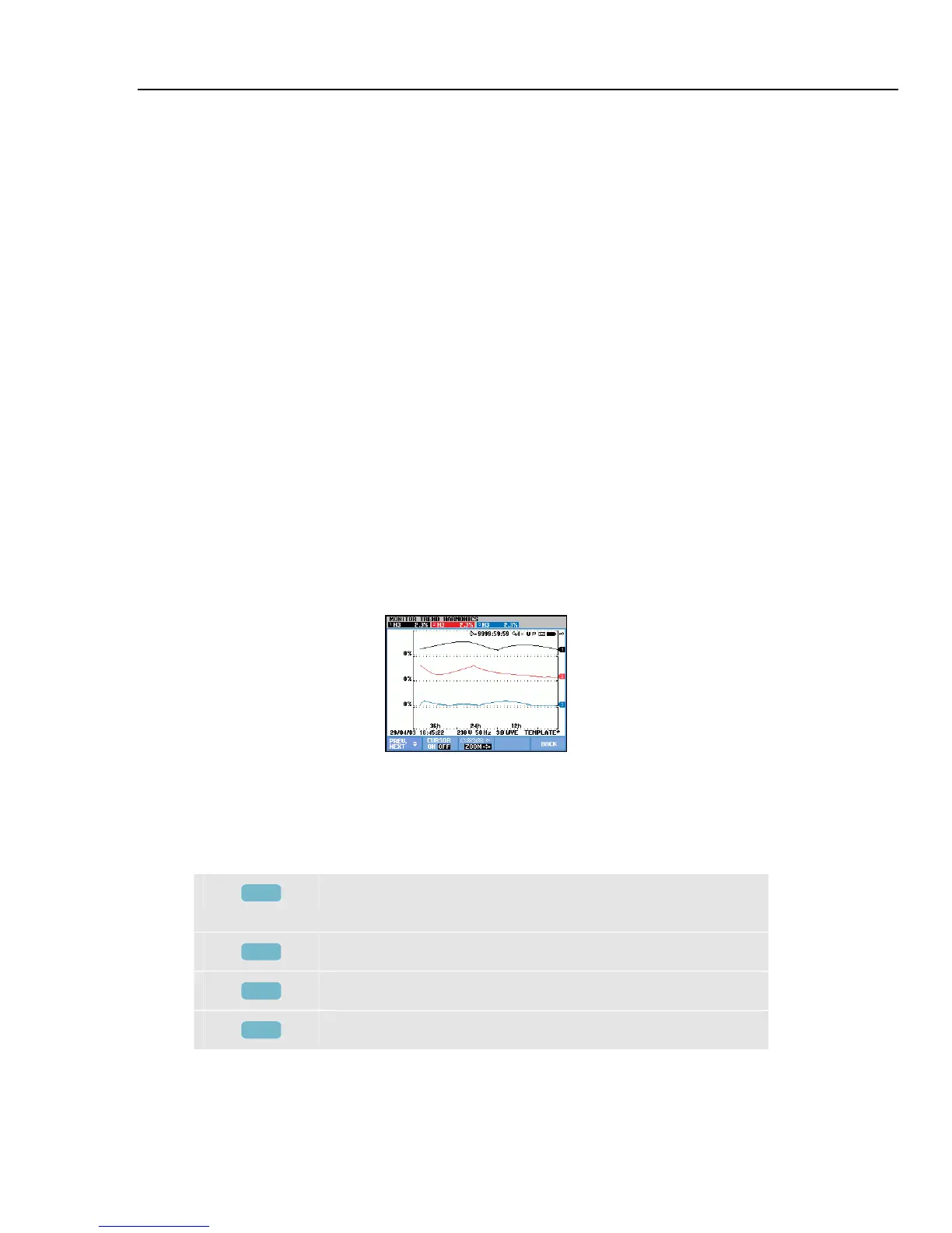 The Trend screen shows the changes over time of measuring values. Zoom and Cursor