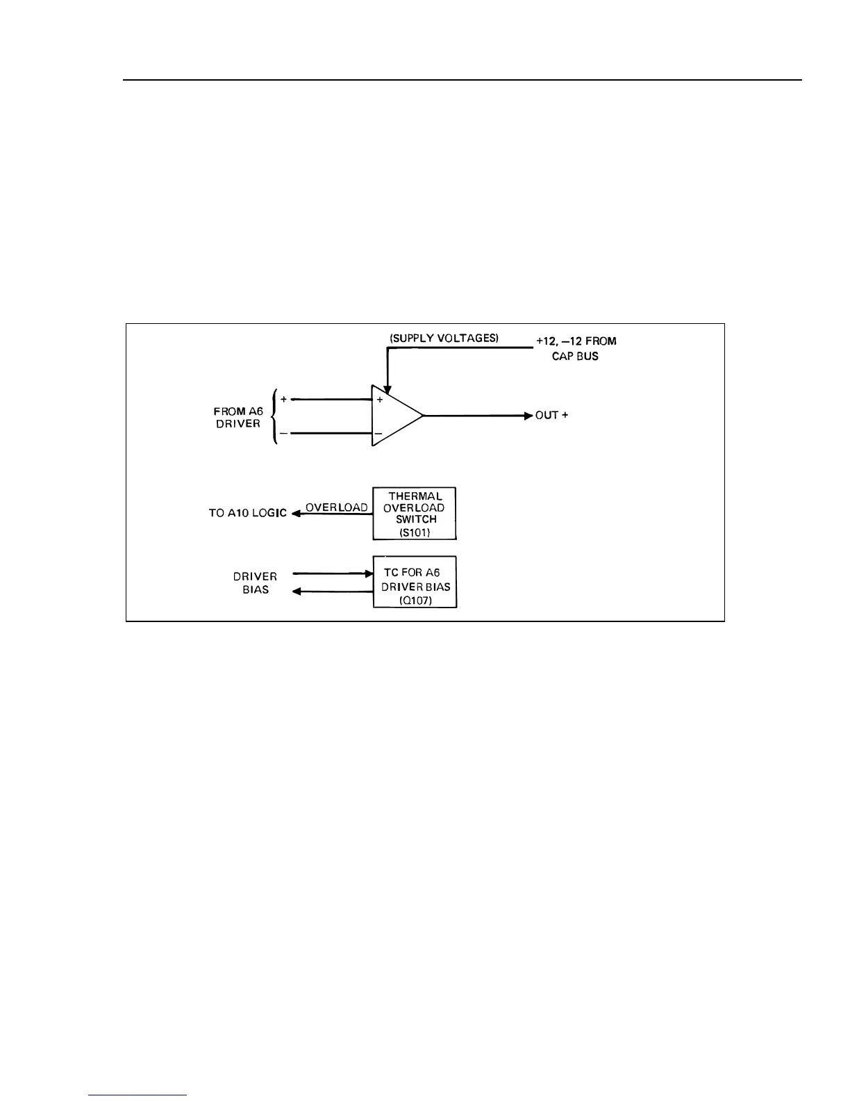 thermal overload switch S101. The differential output from the A6 Driver is applied to
