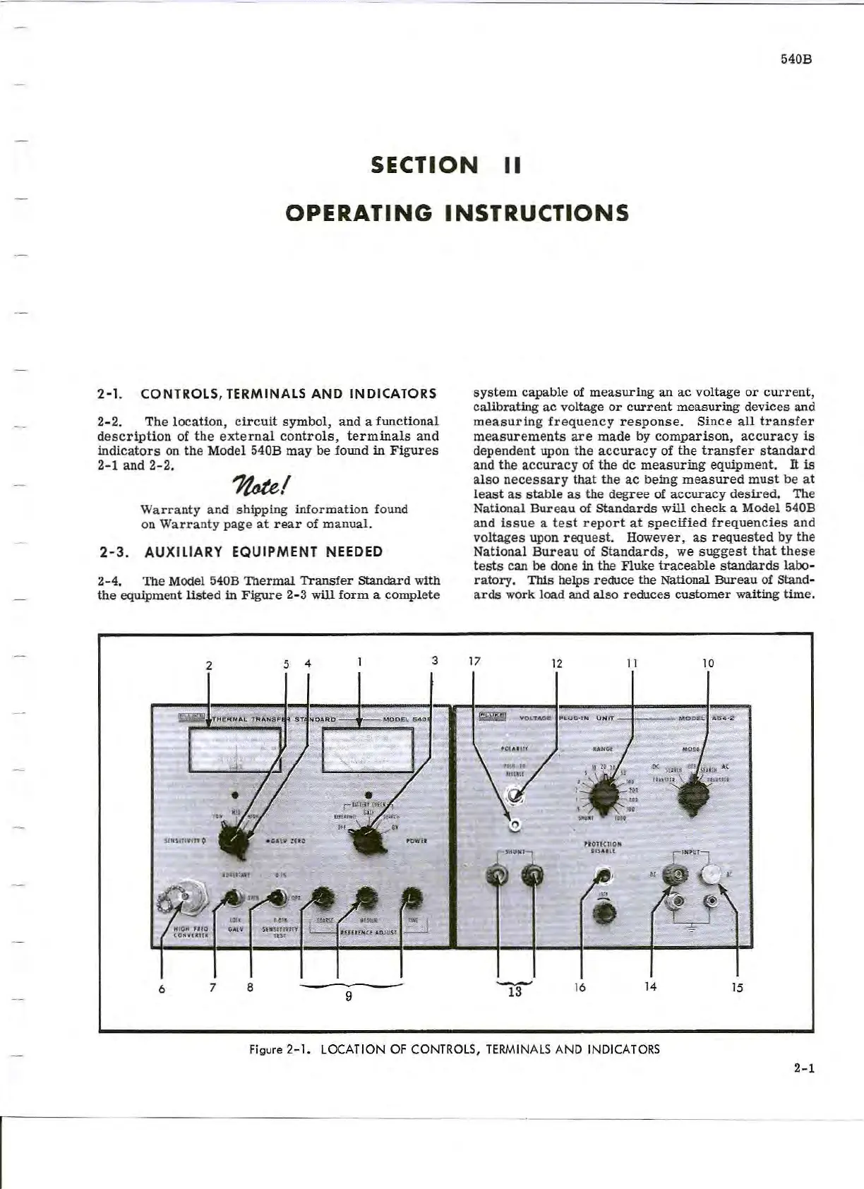 Fluke 540B - SECTION II OPERATING INSTRUCTIONS; Controls, Terminals, and Indicators
