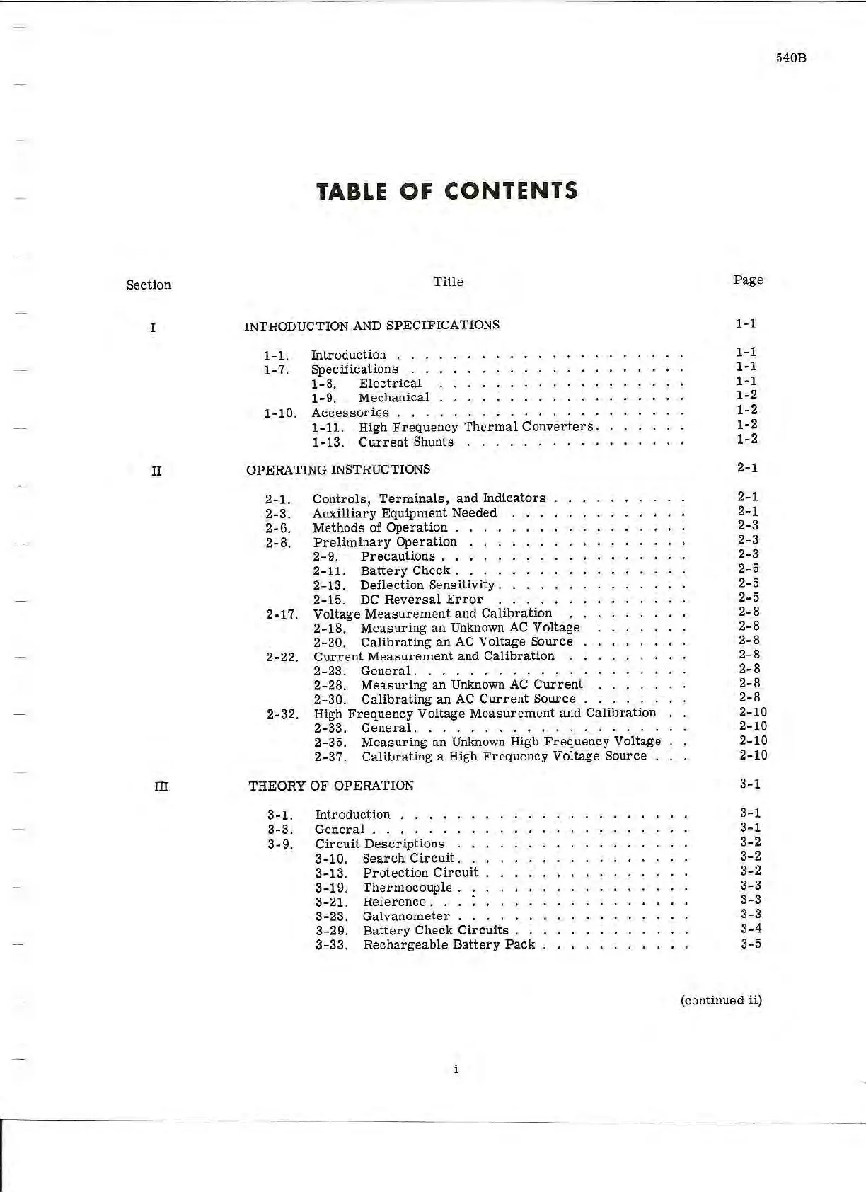 Fluke 540B - Table of Contents