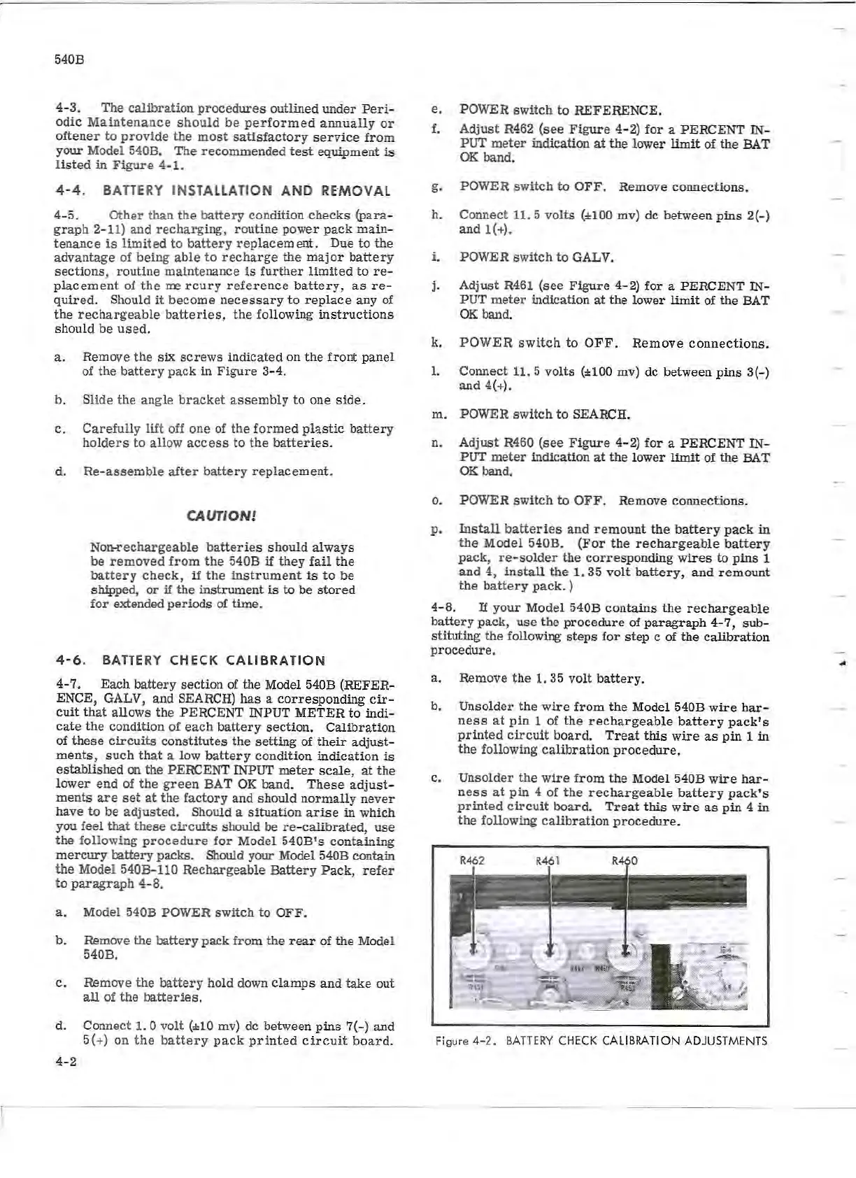 Fluke 540B - Battery Installation and Removal; Battery Check Calibration