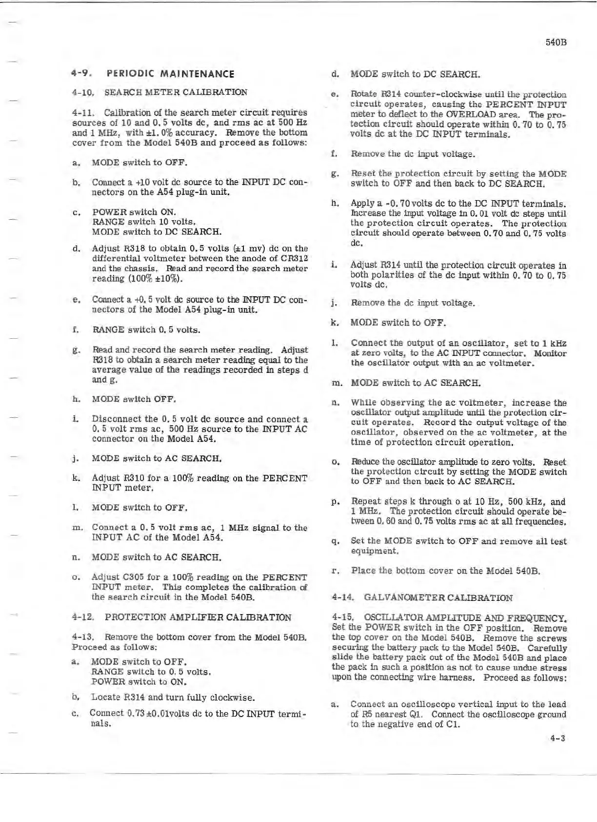 Fluke 540B - Periodic Maintenance; Search Meter Calibration; Protection Amplifier Calibration; Galvanometer Calibration