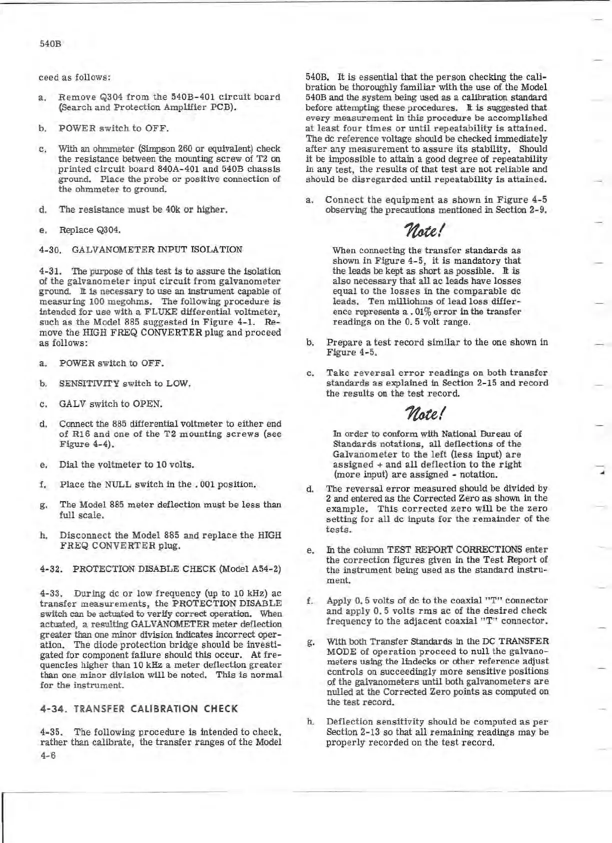 Fluke 540B - Protection Disable Check (Model A54-2); Transfer Calibration Check