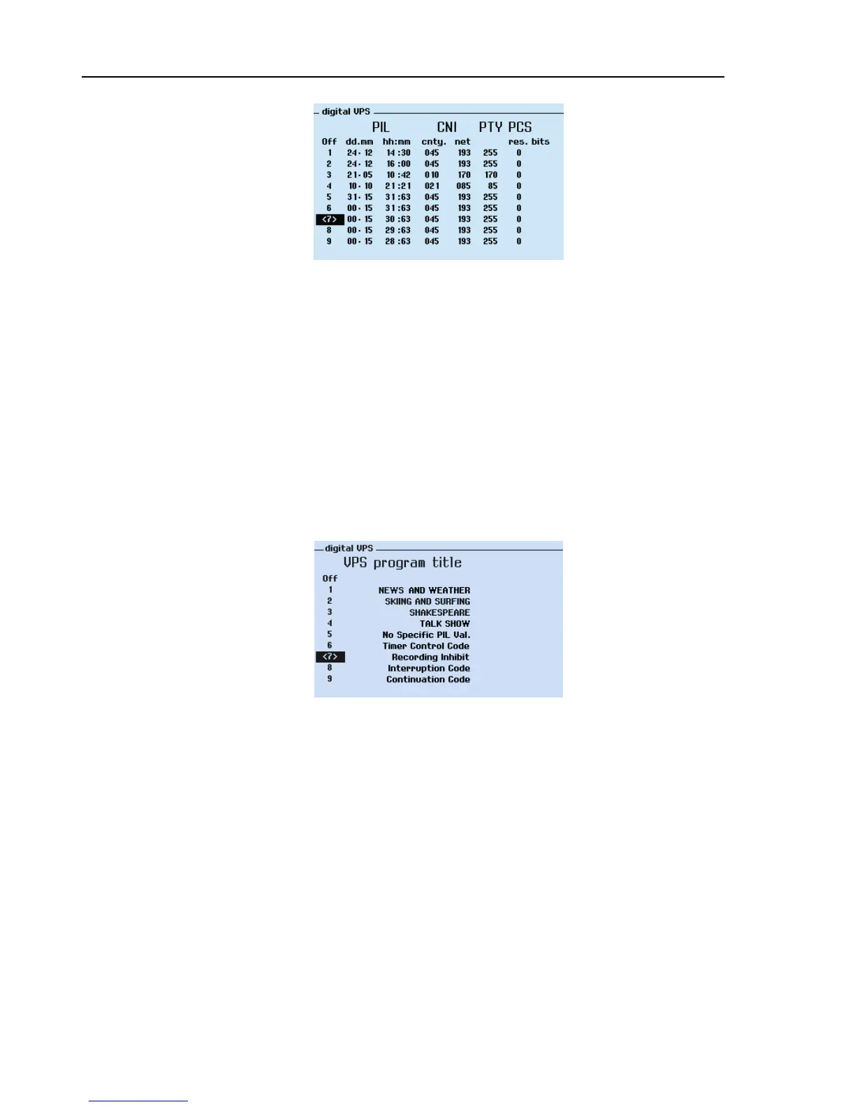 key (F1 softkey) to display the VPS Program Title. The default set-