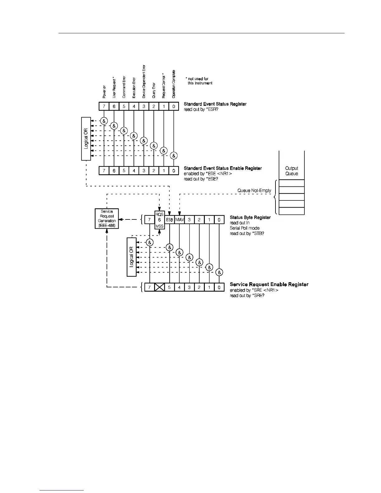 All bits of the 'Standard Event Status Enable Register' and the 'Service Request Enable