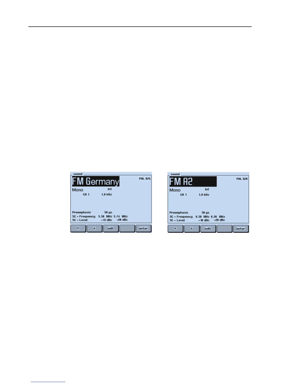 The TV reproduces a sound with 1 kHz modulation in both channels.
