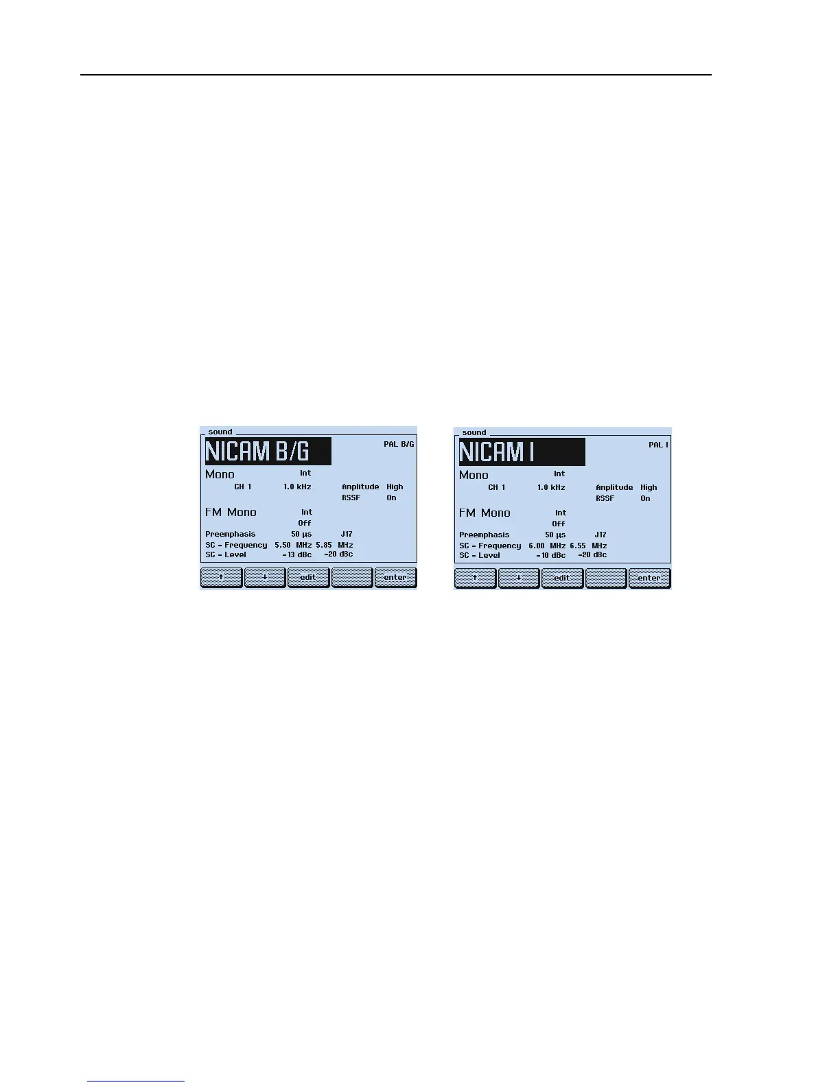 The TV reproduces a sound with 3 kHz modulation in both channels.