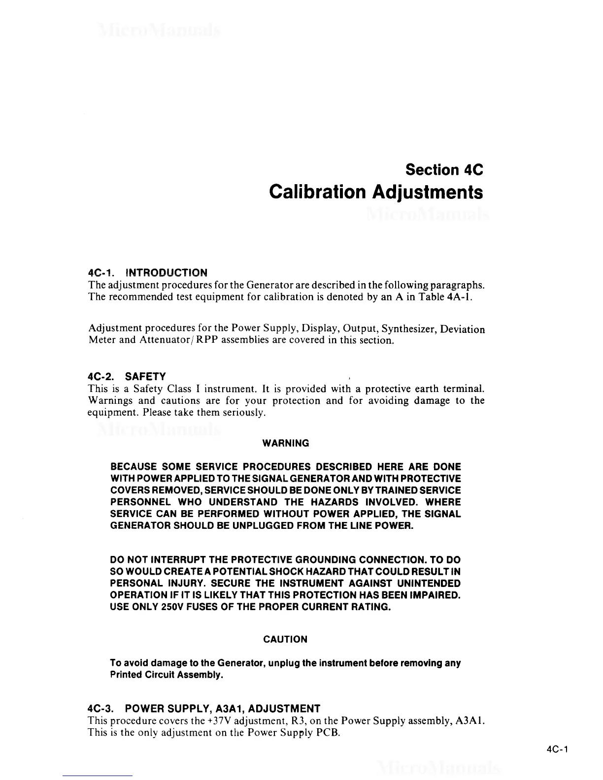 Fluke 6060A - Calibration Adjustments