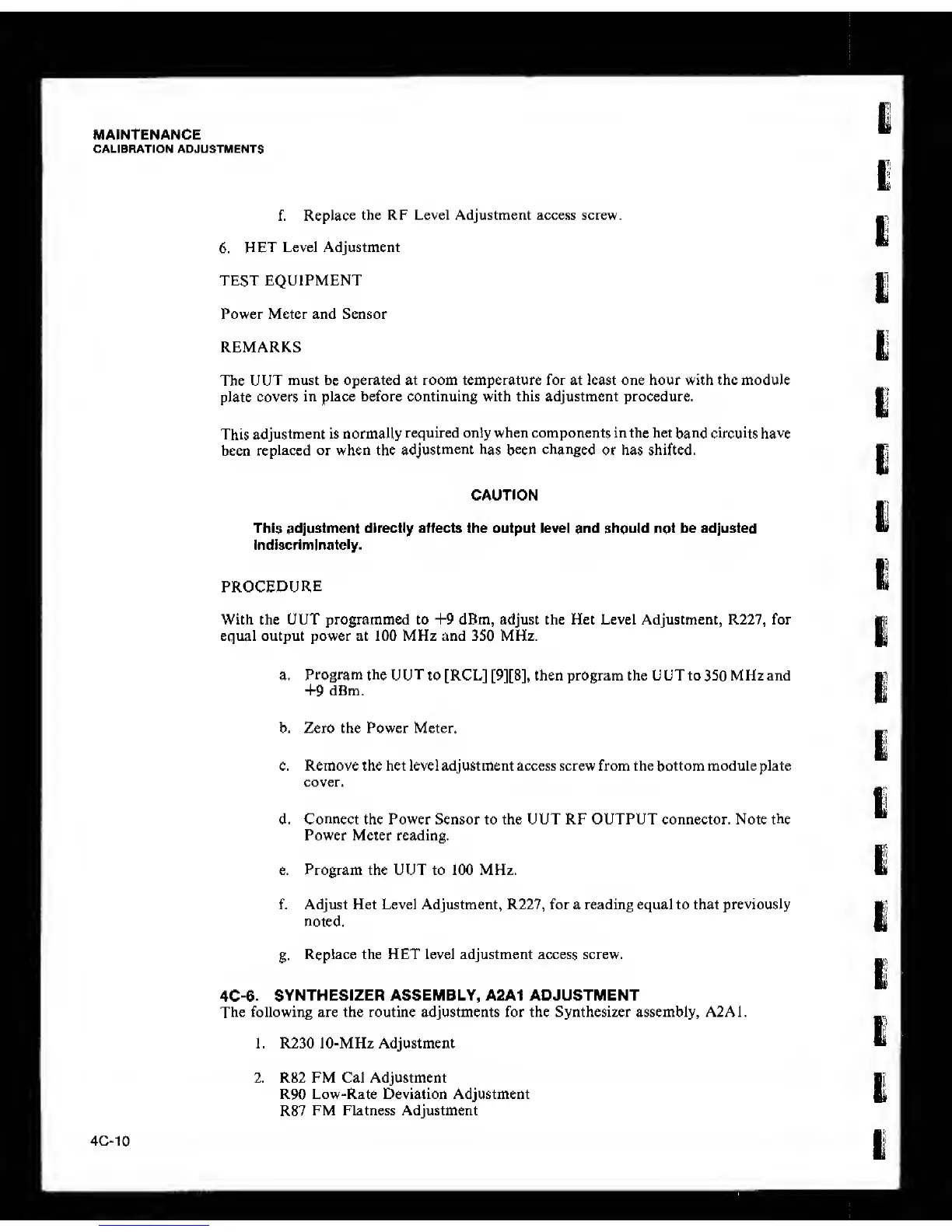 f. Adjust Het Level Adjustment, R227, for a reading equal to that previously