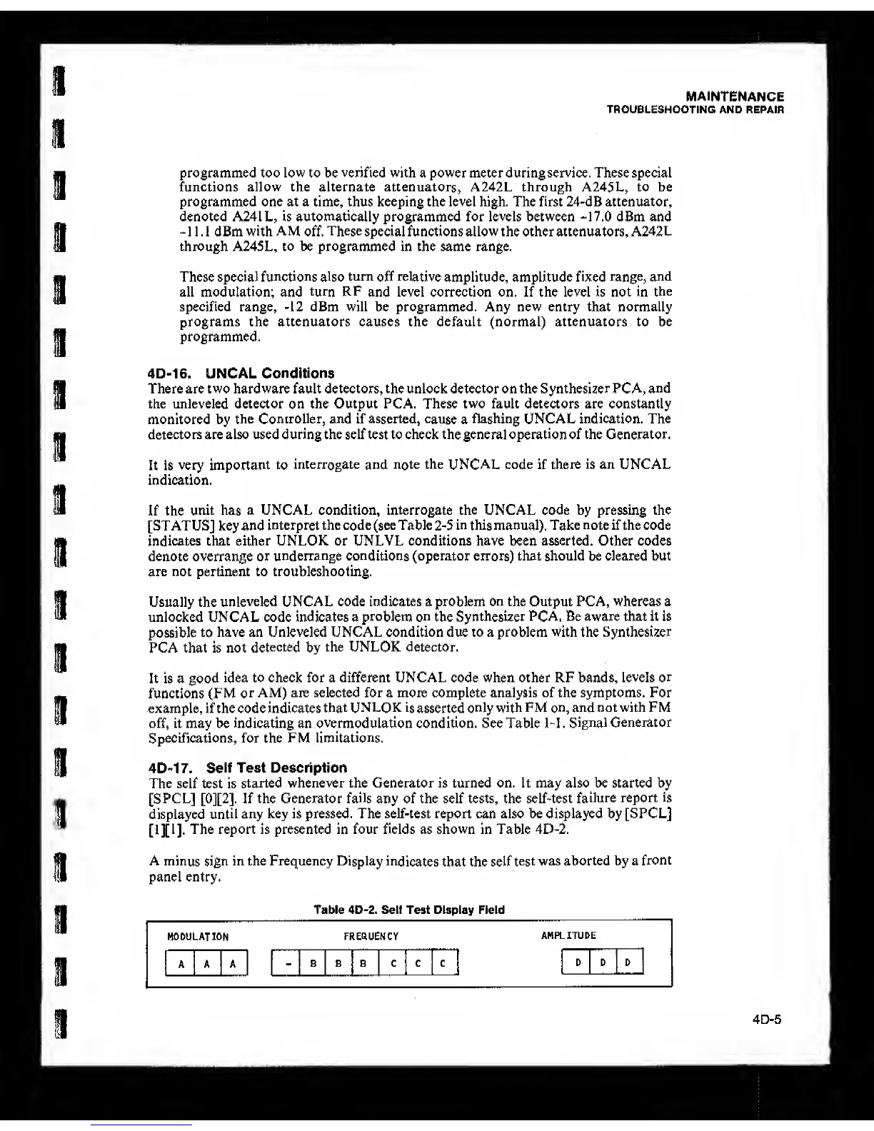 have an Unleveled UNCAL condition due to a problem with the Synthesizer
