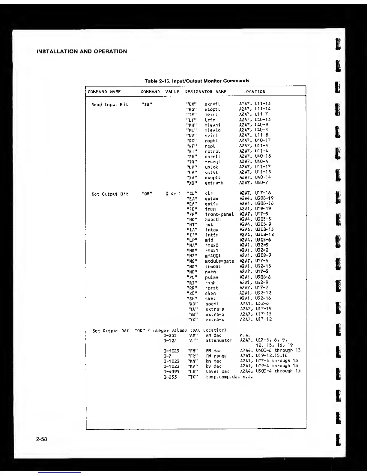 COMMAND NAME COMMAND VALUE DESIGNATOR NAME LOCATION