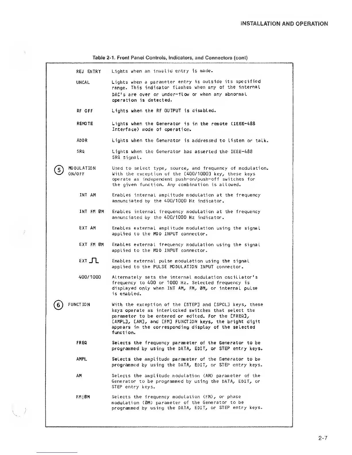 400/1000 Alternately sets the internal modulation oscillator's