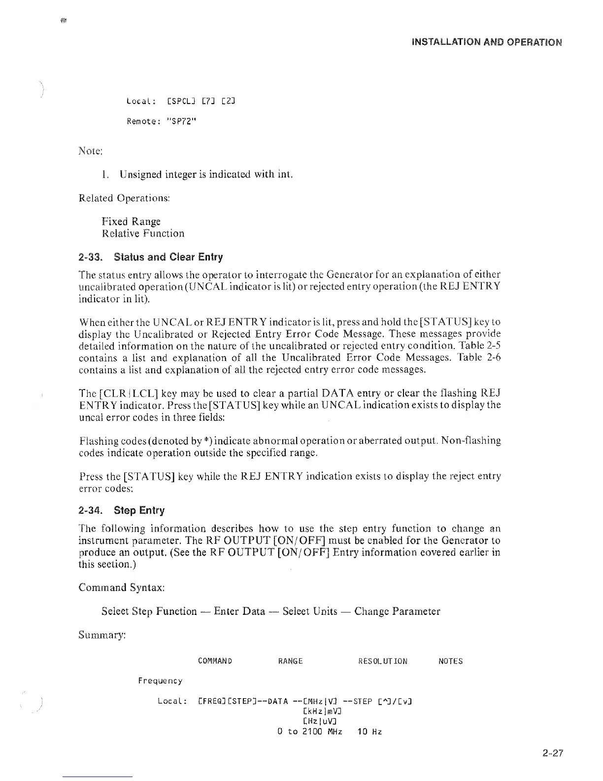 RF OUTPUT [ON/ OFF] Entry information covered earlier in