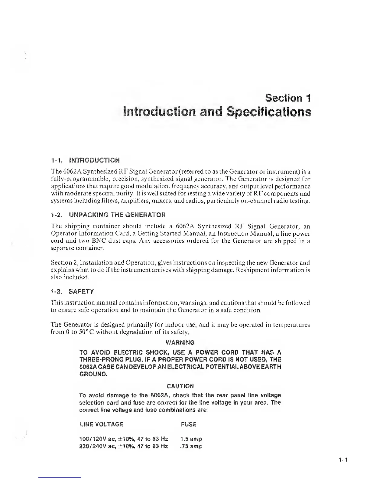 the 6062A, check that the rear panel line voltage
