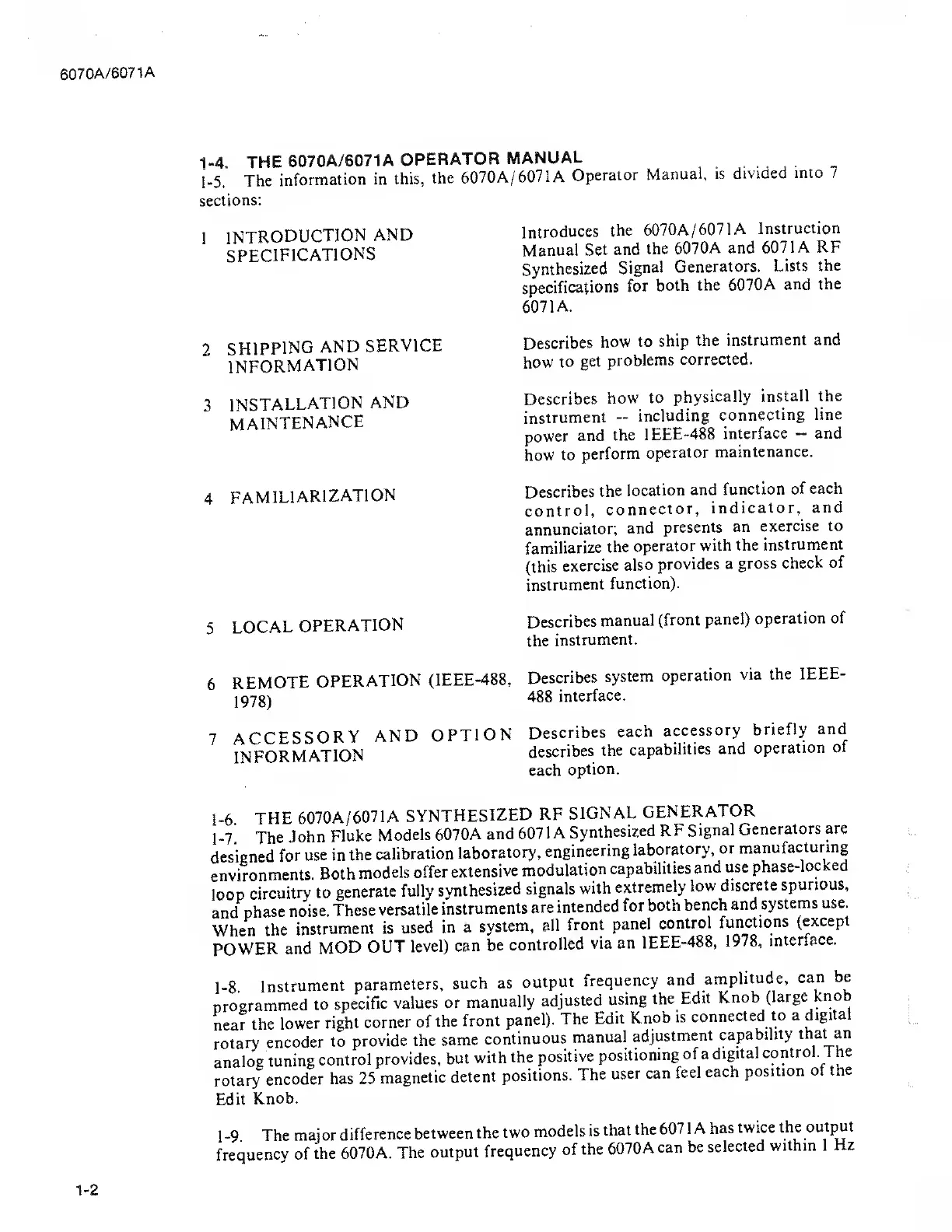 Fluke 6070A - Local Operation; Remote Operation