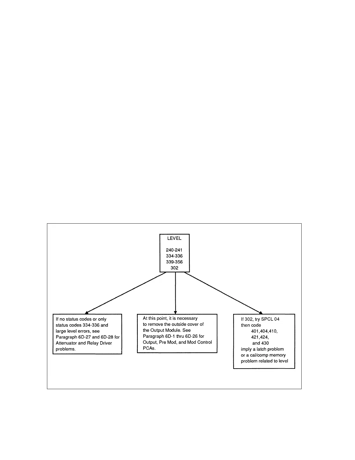 The RF Level Fault Tree (Figure 6D-1), is the starting point for troubleshooting RF