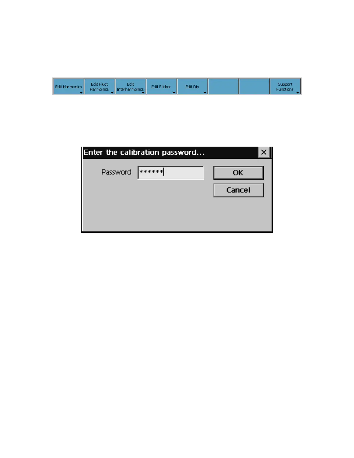 Password softkey. See Chapter 6. Any alpha numeric character available via the 6100B