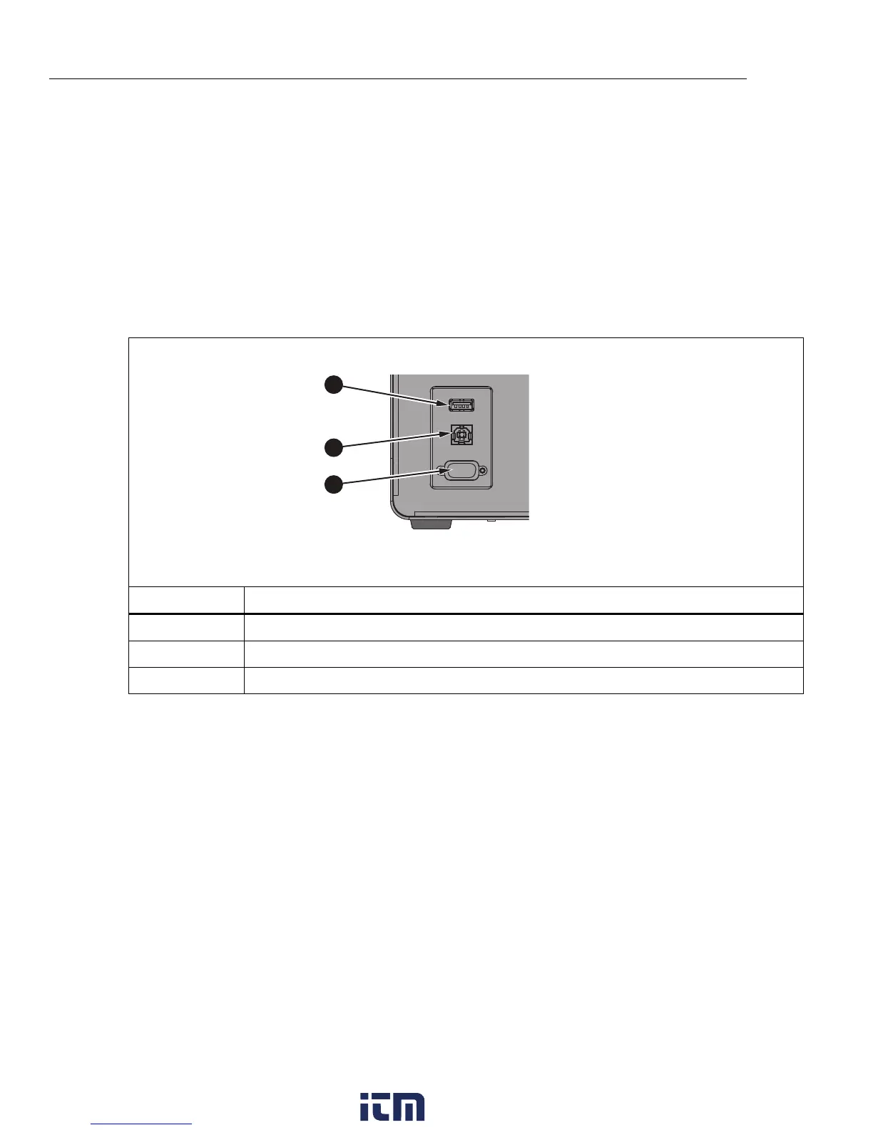 Ports for the USB device and RS-232 interface are located in the lower-left area