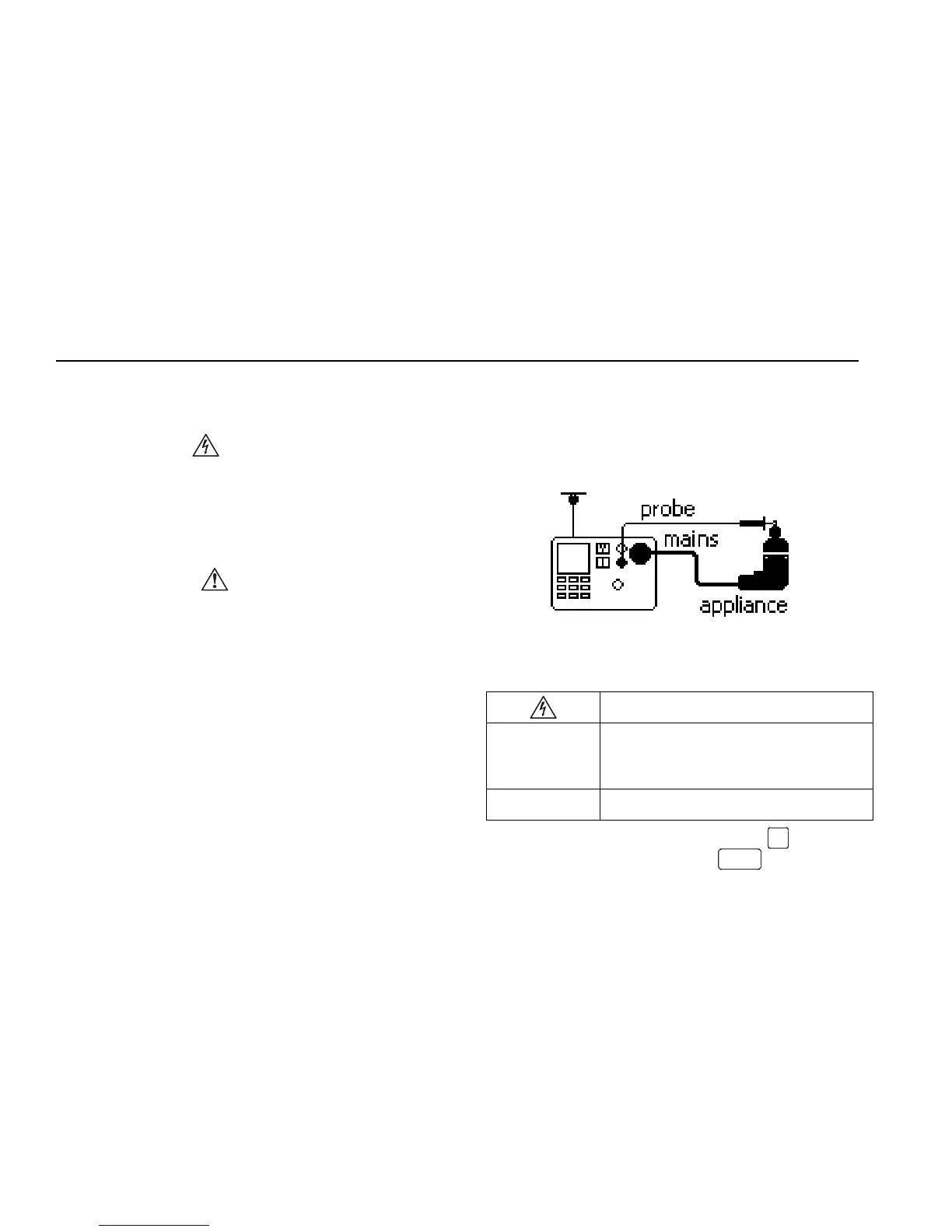 Connect the appliance and the test probe as indicated on