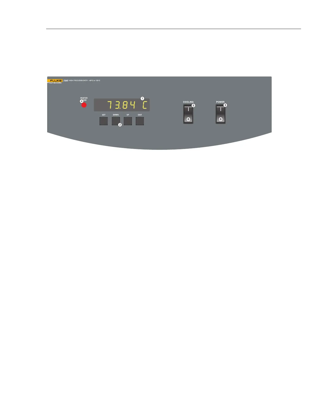 7-1): (1) the digital LED display, (2) the control buttons, (3) the bath on/off power switch,