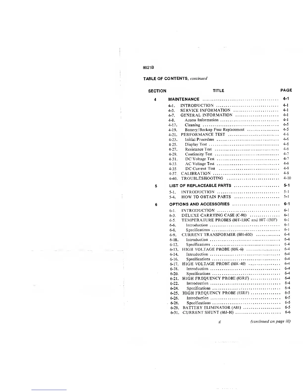 Fluke 8021B - SECTION 4 MAINTENANCE; 4-1. INTRODUCTION; 4-9. BACKUP FUSE (F2) AND CALIBRATION ACCESS; 4-11. COMPONENT;PCB ACCESS