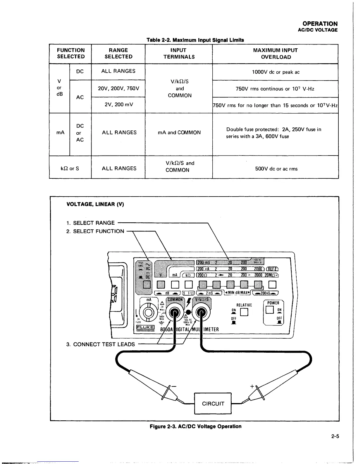 Fluke 8050A - 2-22. AC;DC Voltage (V) Operation