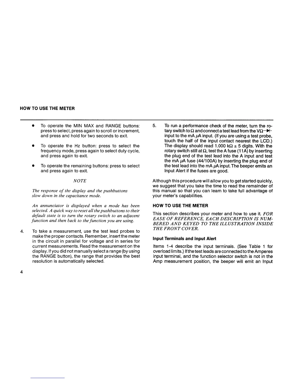 Fluke 83 - How to Use the Meter; Input Terminals and Input Alert