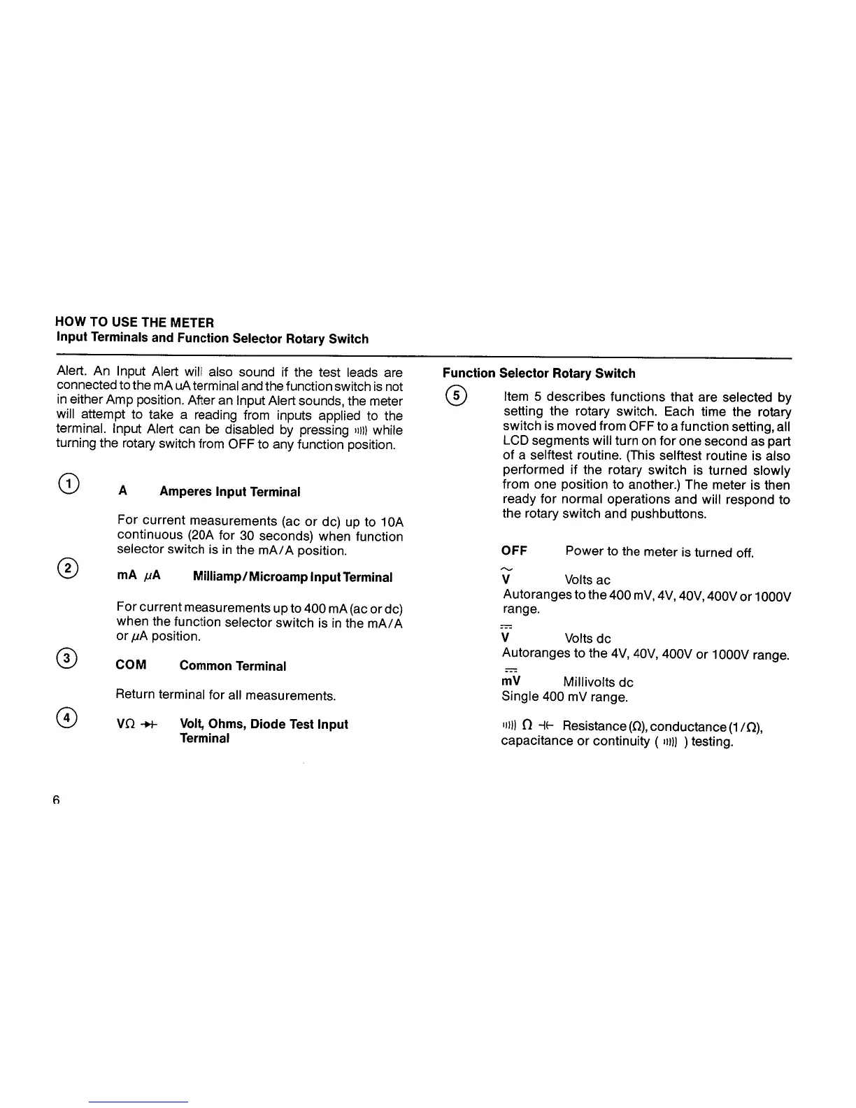 Fluke 83 - Input Terminals and Function Selector Rotary Switch; Function Selector Rotary Switch