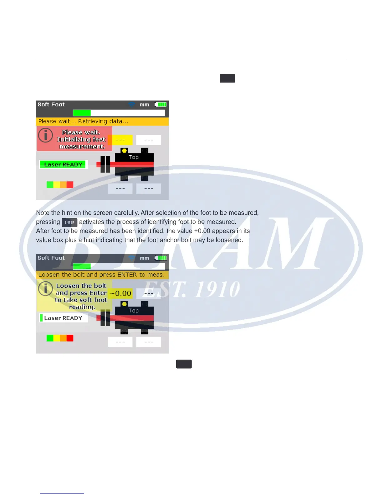 Note the hint on the screen carefully. After selection of the foot to be measured,