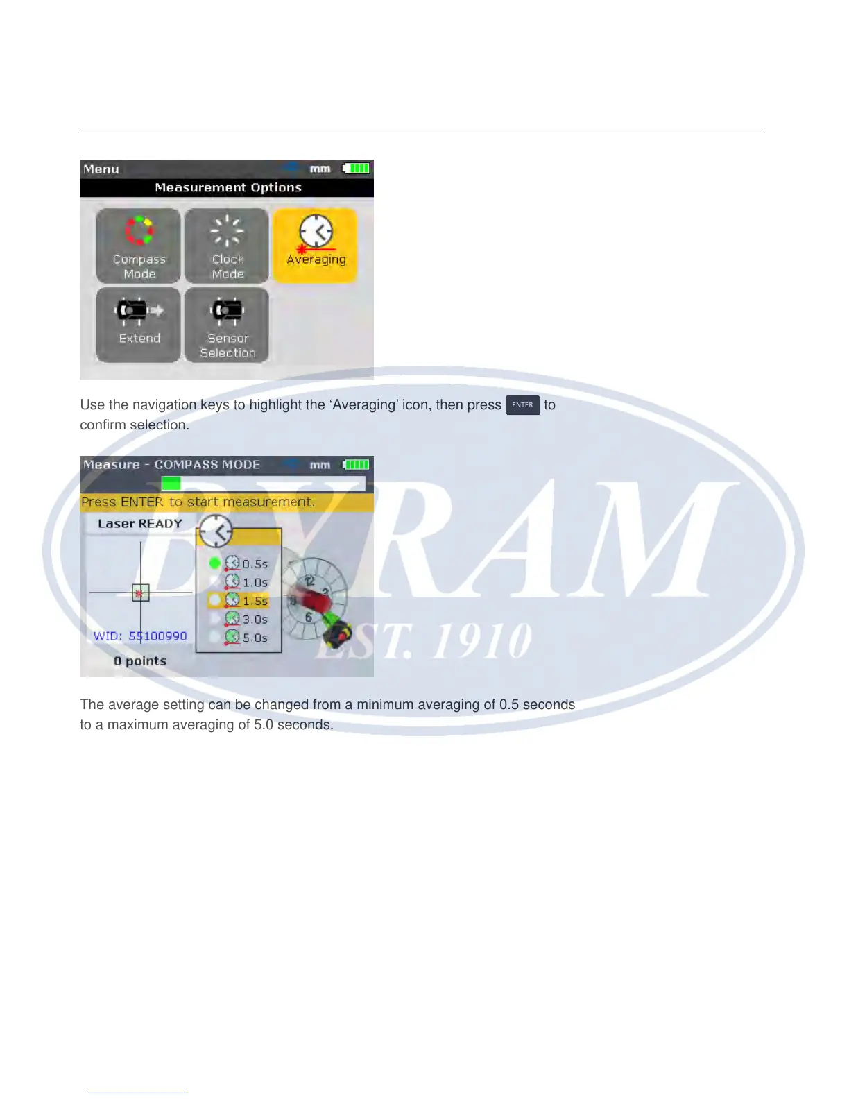 Use the navigation keys to highlight the ‘Averaging’ icon, then press