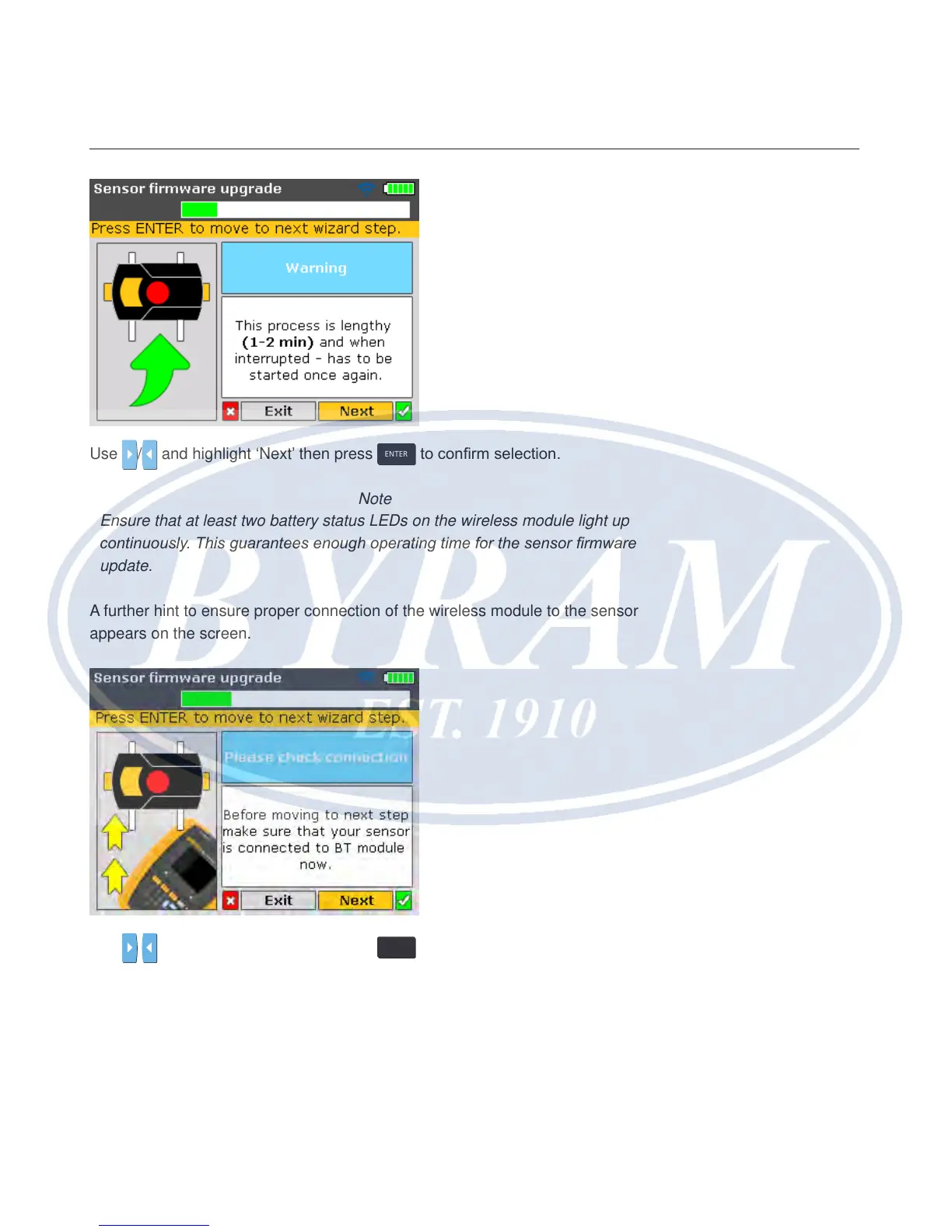 Use / and highlight ‘Next’ then press