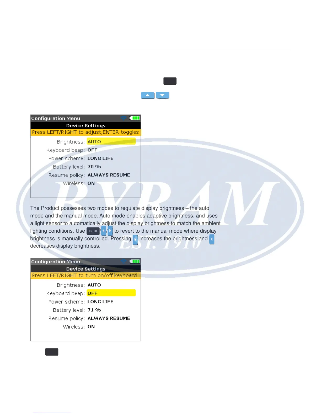 To open the “Device settings” screen, use the navigation keys to highlight the