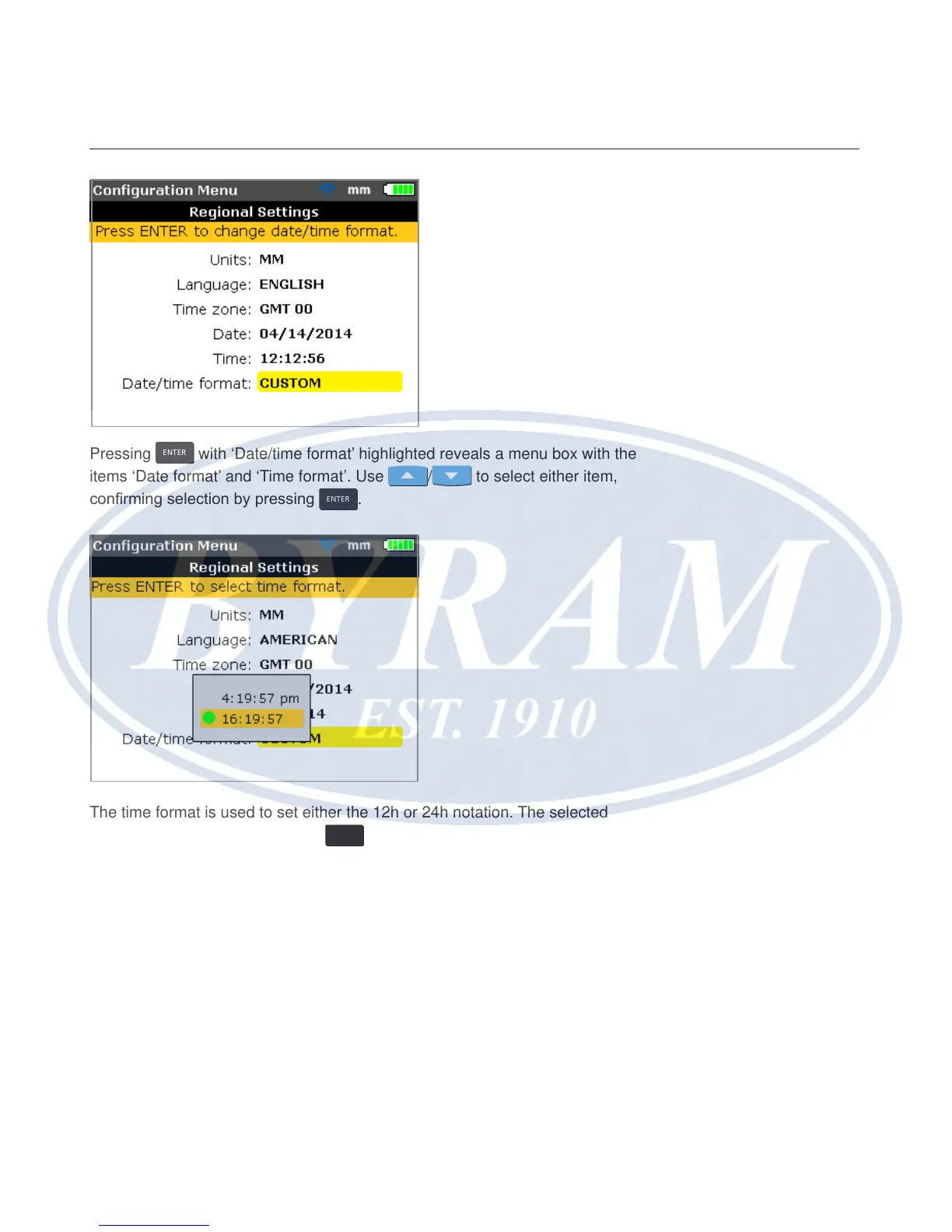 with ‘Date/time format’ highlighted reveals a menu box with the