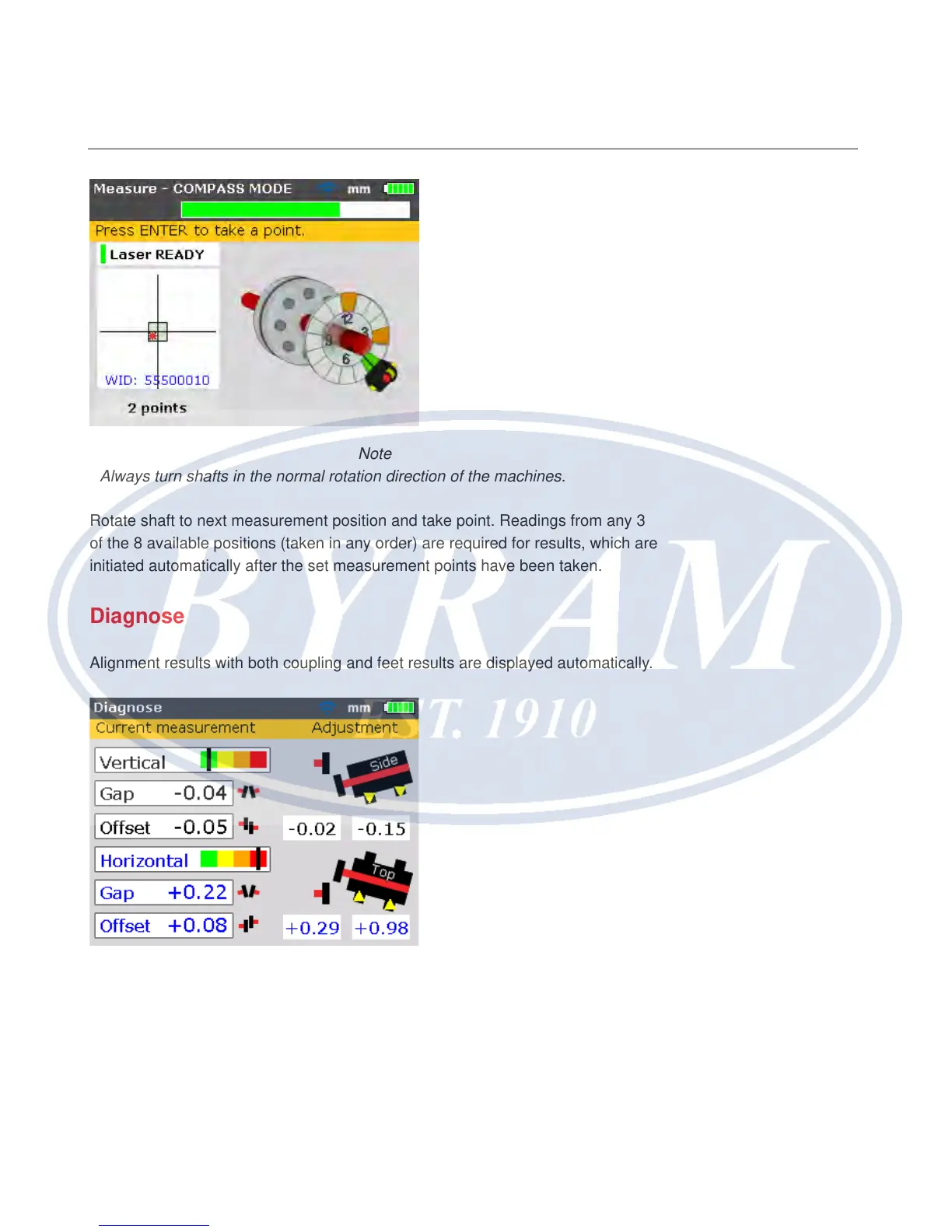 Rotate shaft to next measurement position and take point. Readings from any 3