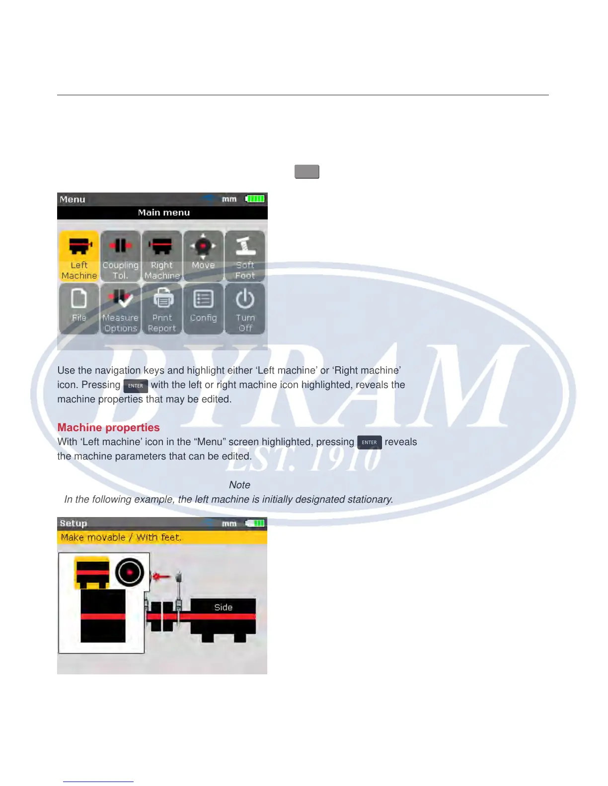 Use the navigation keys and highlight either ‘Left machine’ or ‘Right machine’