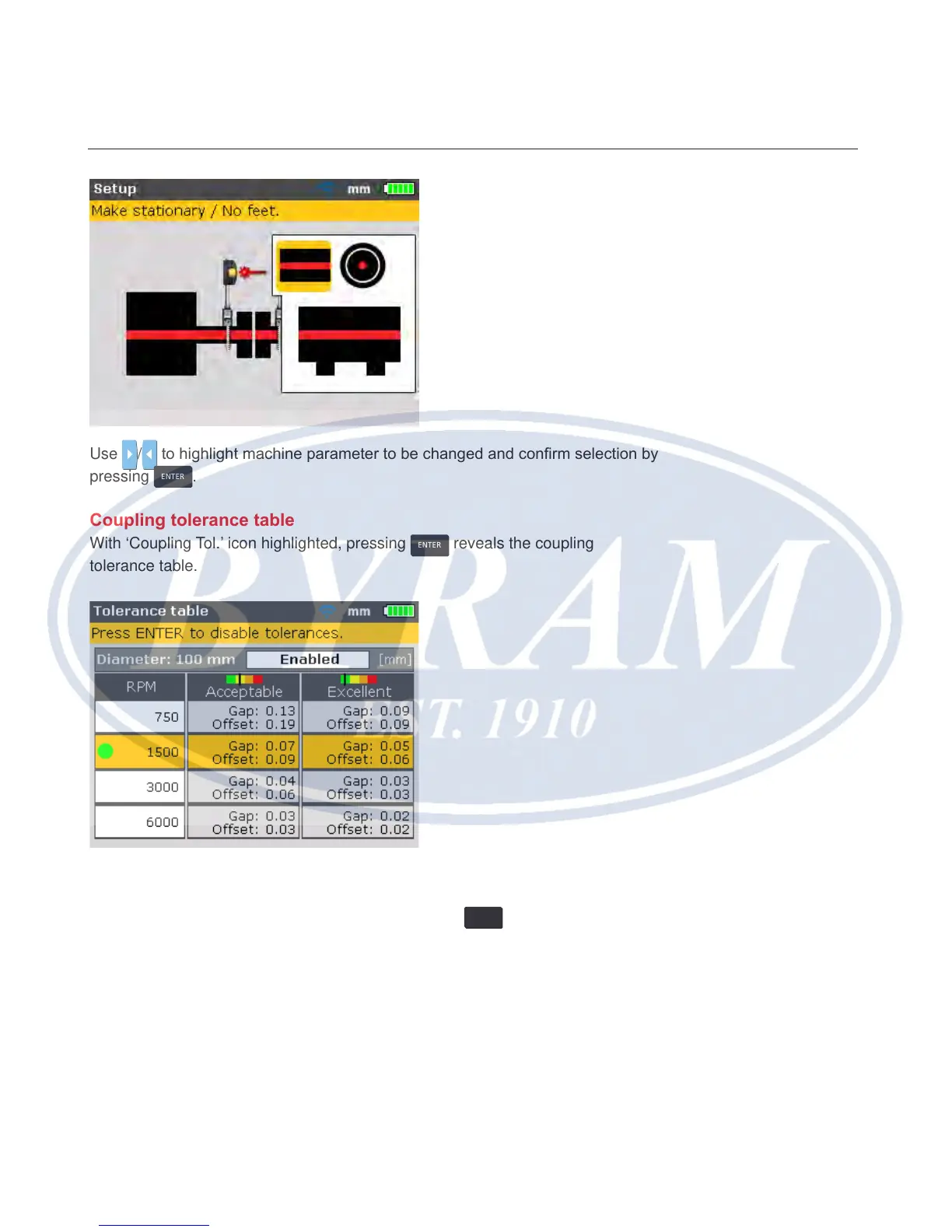 value may be set from the “Tolerance table” screen. Use the navigation keys and