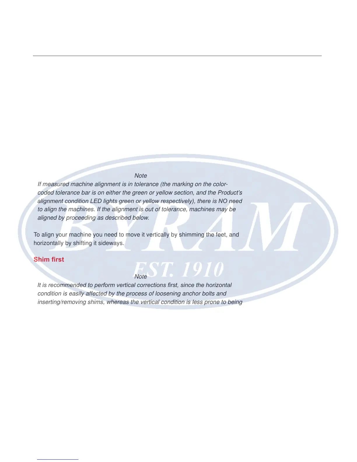 to align the machines. If the alignment is out of tolerance, machines may be