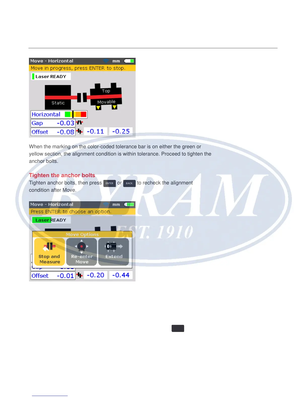 yellow section, the alignment condition is within tolerance. Proceed to tighten the
