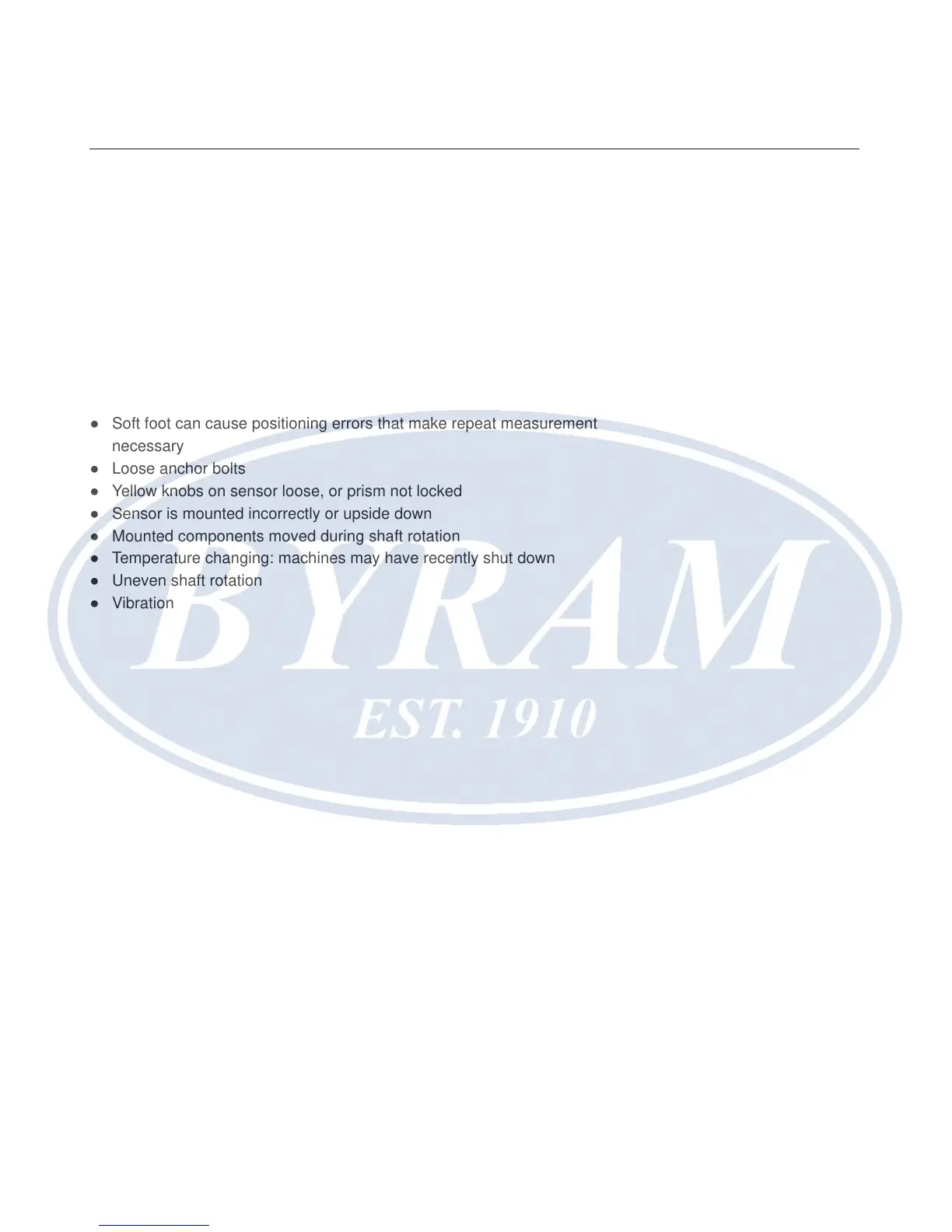 ● Soft foot can cause positioning errors that make repeat measurement