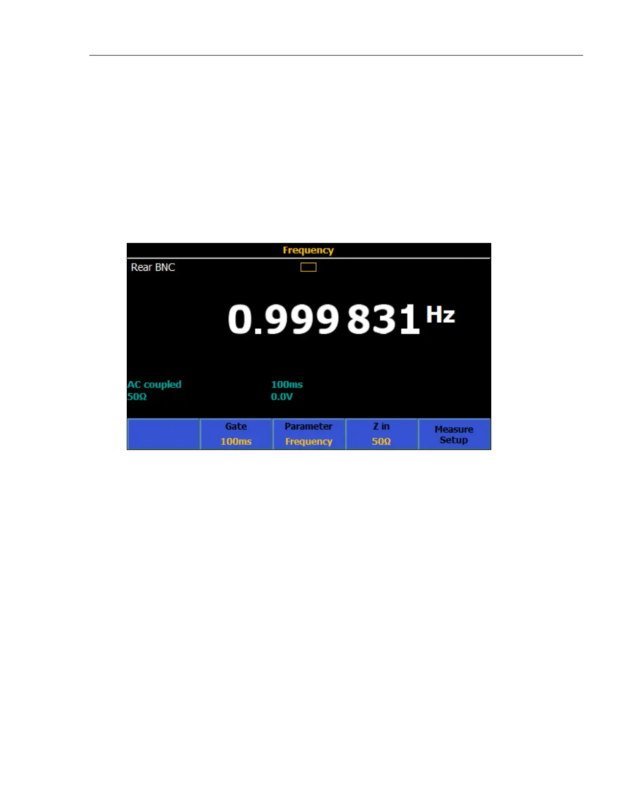 The default Frequency Counter measuring screen is shown below. The input field