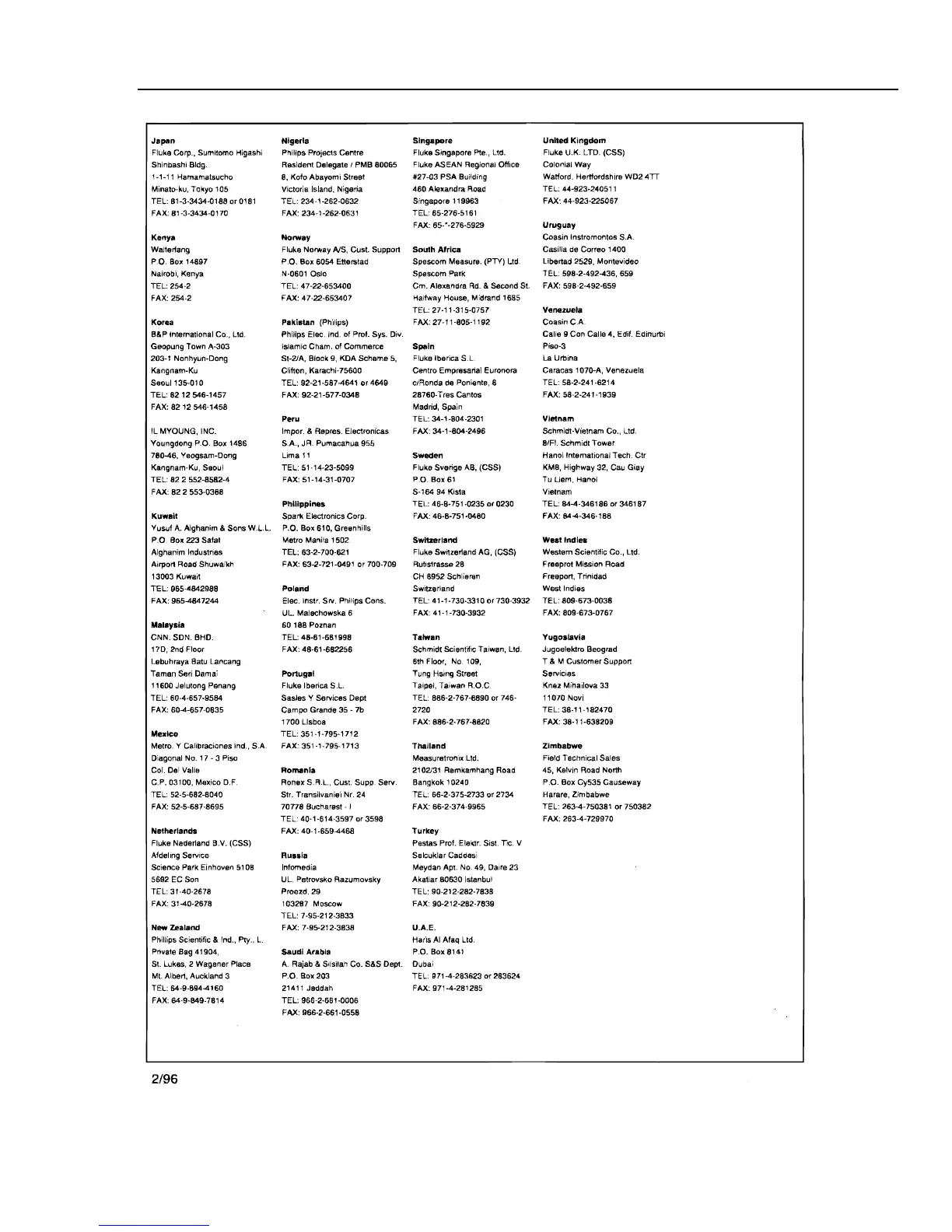 Fluke 8842A - Service Centers (Cont)