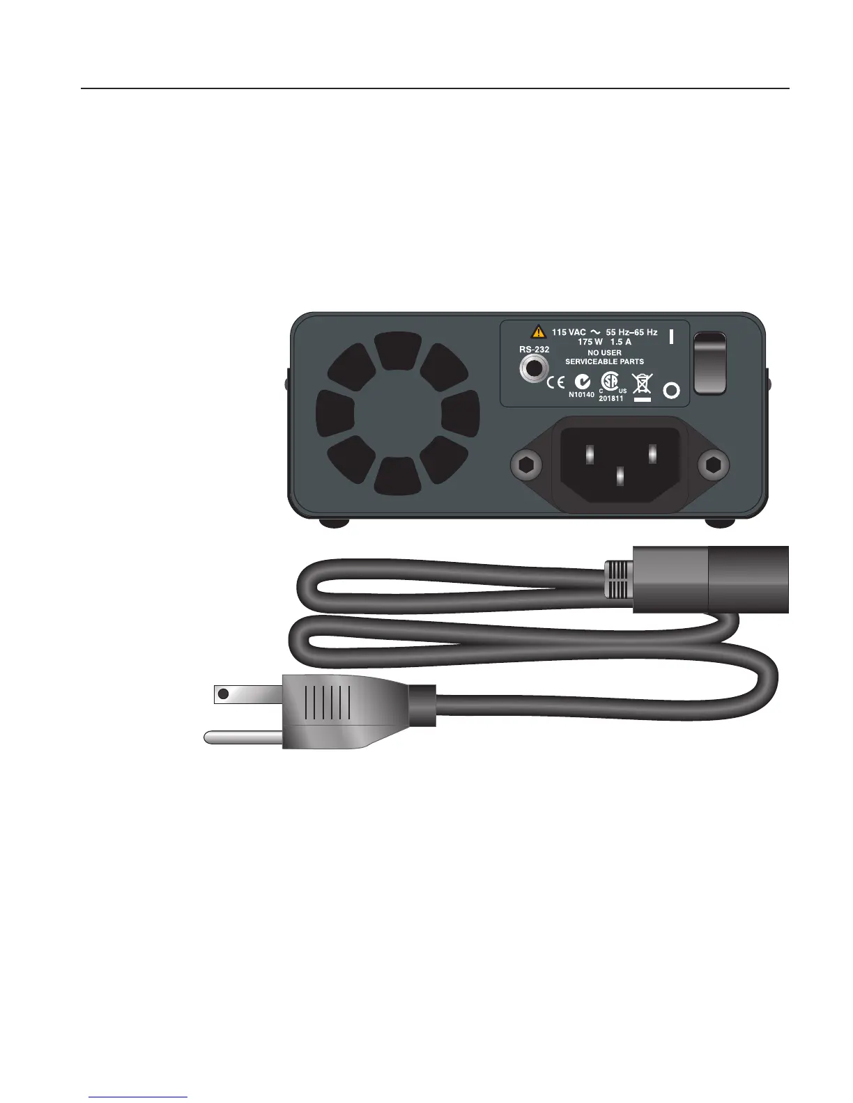 side of the instrument. It plugs into a standard 115 VAC (optional 230 VAC) grounded