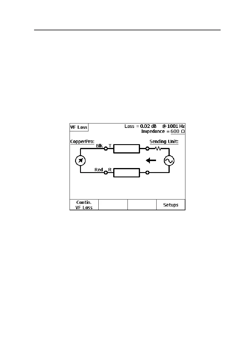 The Single Tone VF Loss test measures the insertion loss of the pair at the