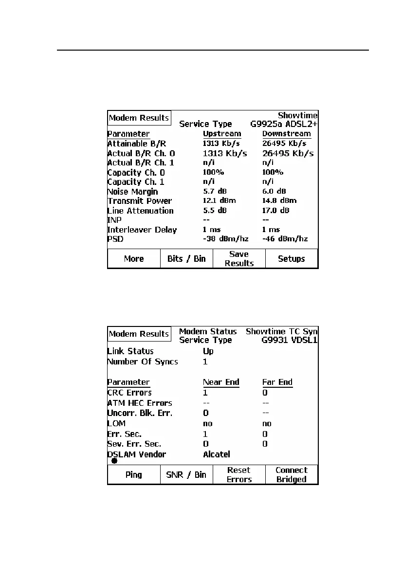 Figure 5-10. DSL Modem Test Secondary Results Screen: VDSL1.5 Line