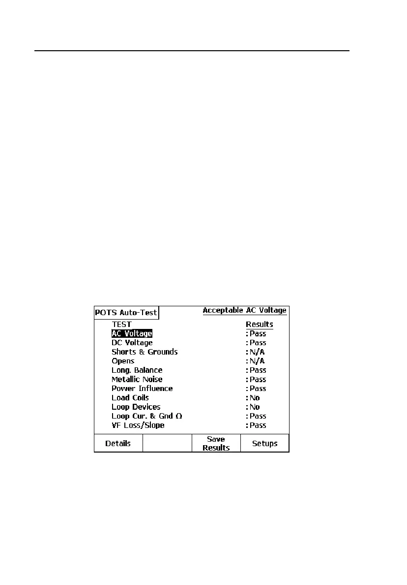 Main menu (Figure 3-2), select POTS Auto-Test. Then, press